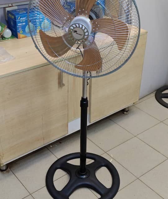 The 18″ pedestal fan is a powerful and durable air circulation appliance designed for home and office use. With its strong motor and multi-blade design, it delivers a refreshing breeze to cool down any room. The fan features an adjustable height stand and a wide oscillating head to ensure air is distributed evenly. It is built with a sturdy base for stability and includes multiple speed settings to customize your comfort.
