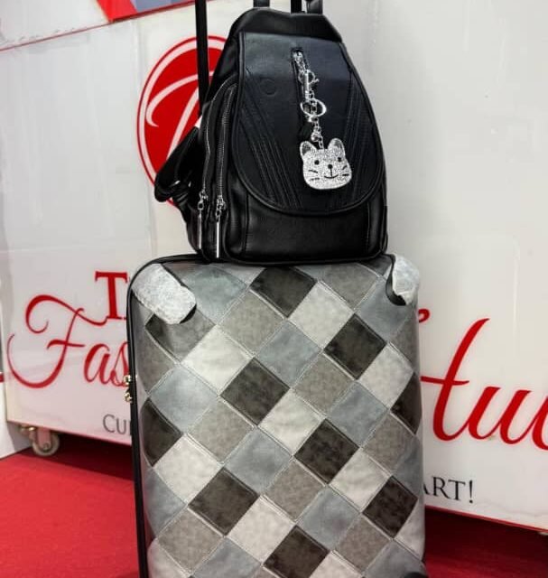 Vintage Checkered Travel Suitcase With Pure Leather Backpack