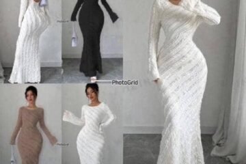 Knitted Round Neck Long Sleeve Dinner Party Dress – White