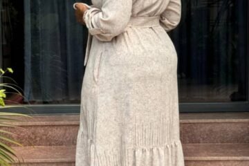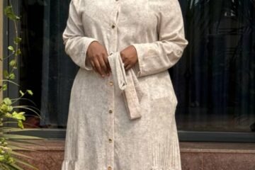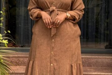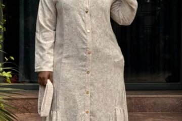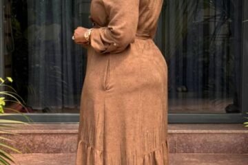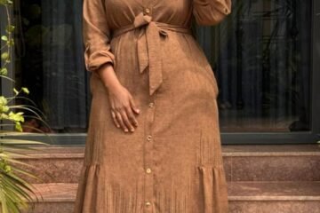Linen Dress with Gathered Details and Button Fastening – Brown