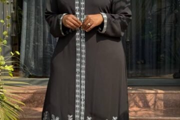 Elegant Black Abaya with Exquisite Silver Embroidery